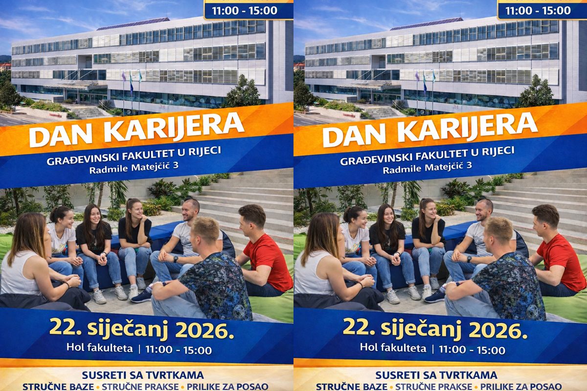 U četvrtak, 22. siječnja 2026. od 11 do 15 sati u atriju Građevinskog fakulteta Sveučilišta u Rijeci bit će održan Dan karijera.
