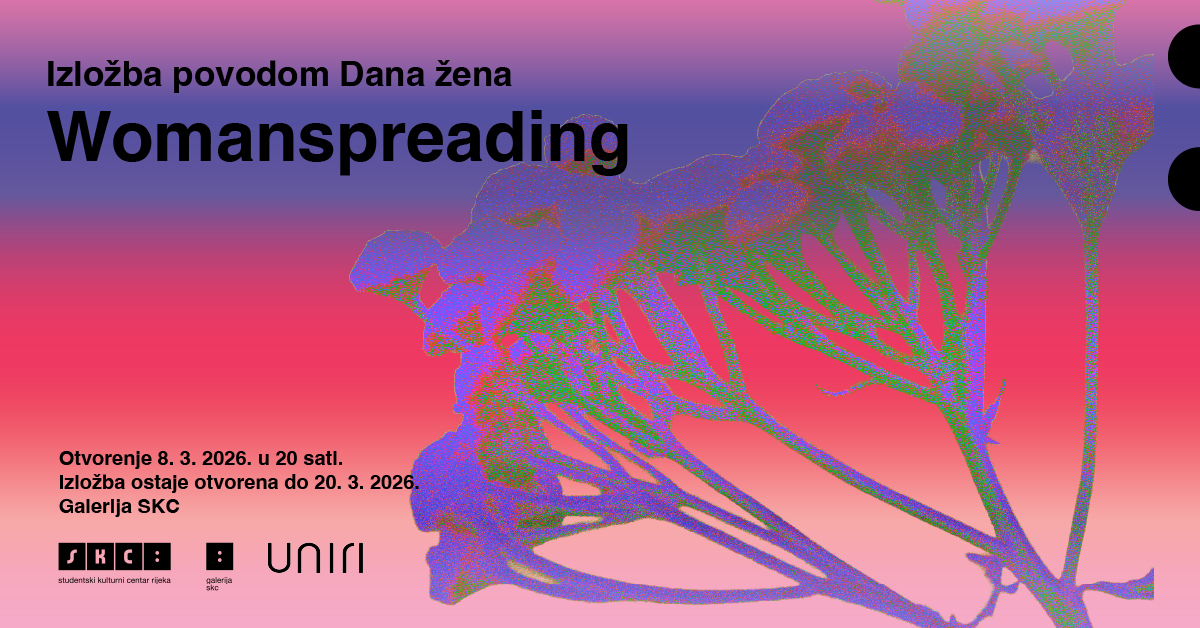 Galerija SKC poziva na otvorenje anualne izložbe povodom Dana žena, ove godine pod nazivom Womanspreading, u nedjelju 8. ožujka s početkom u 20 sati, nakon Noćnog marša.