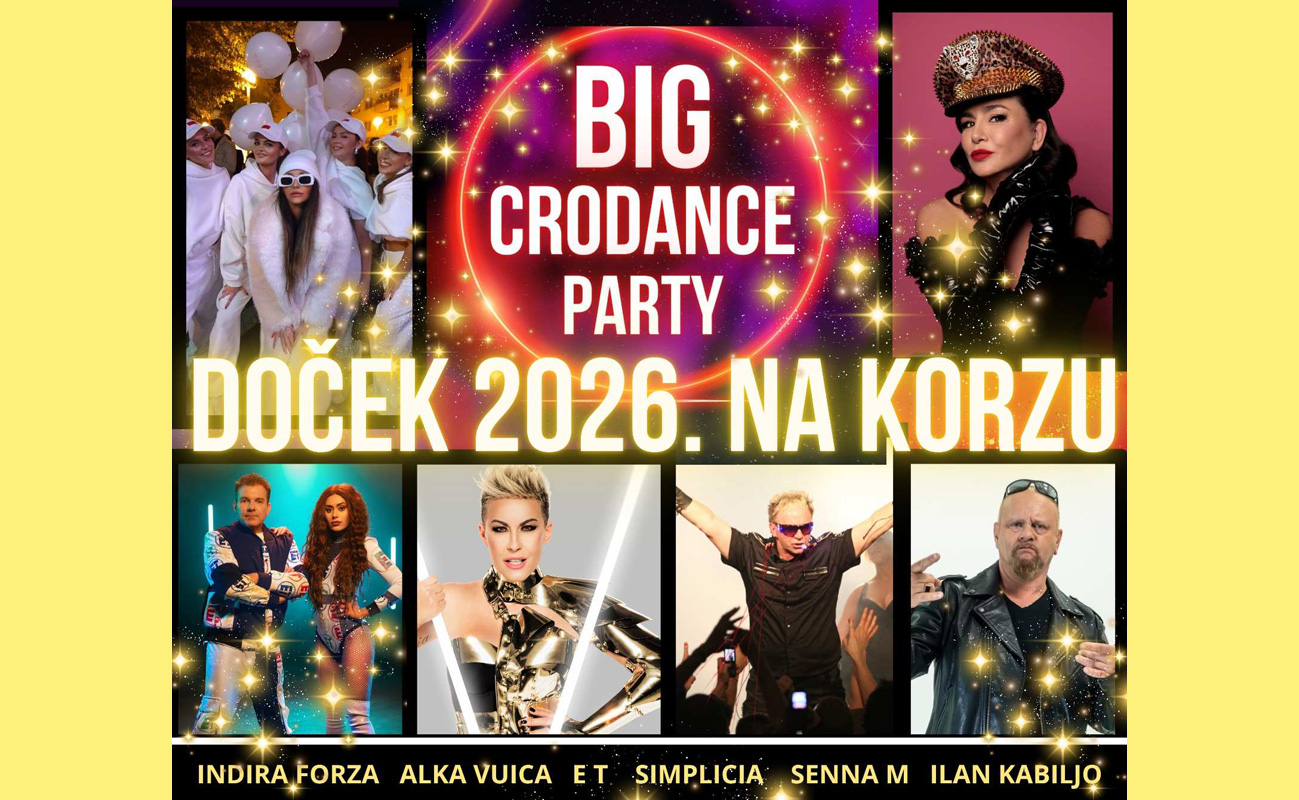 Dočekajte 2026. godinu uz spektakularne nastupe, prepoznatljive ritmove i atmosferu koja grije – uživajte u novogodišnjem izdanju Big CroDance Partya, autentičnog plesnog spektakla koji slavi glazbu, zajedništvo i nezaboravne hitove!