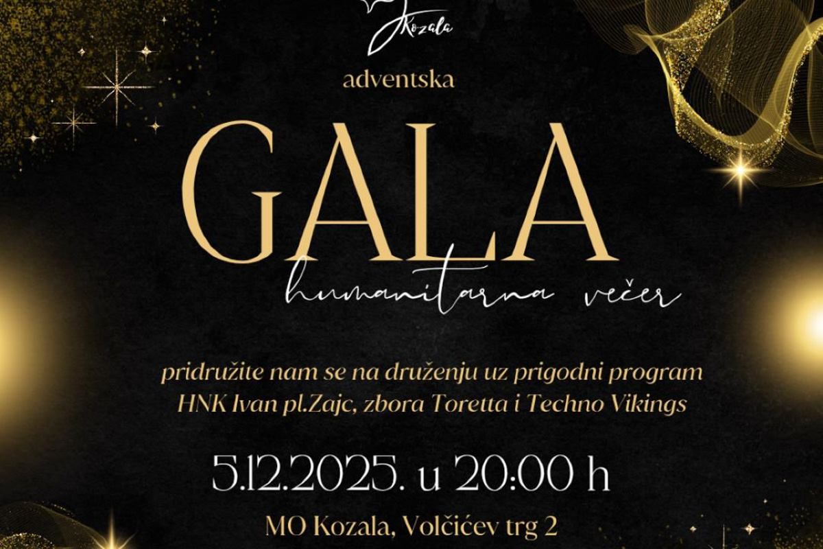 U petak, 5. prosinca 2025. godine, od 20:00 sati, u velikoj dvorani MO Kozala, na adresi Volčićev trg 2, održat će se gala humanitarna adventska večer na Kozali.