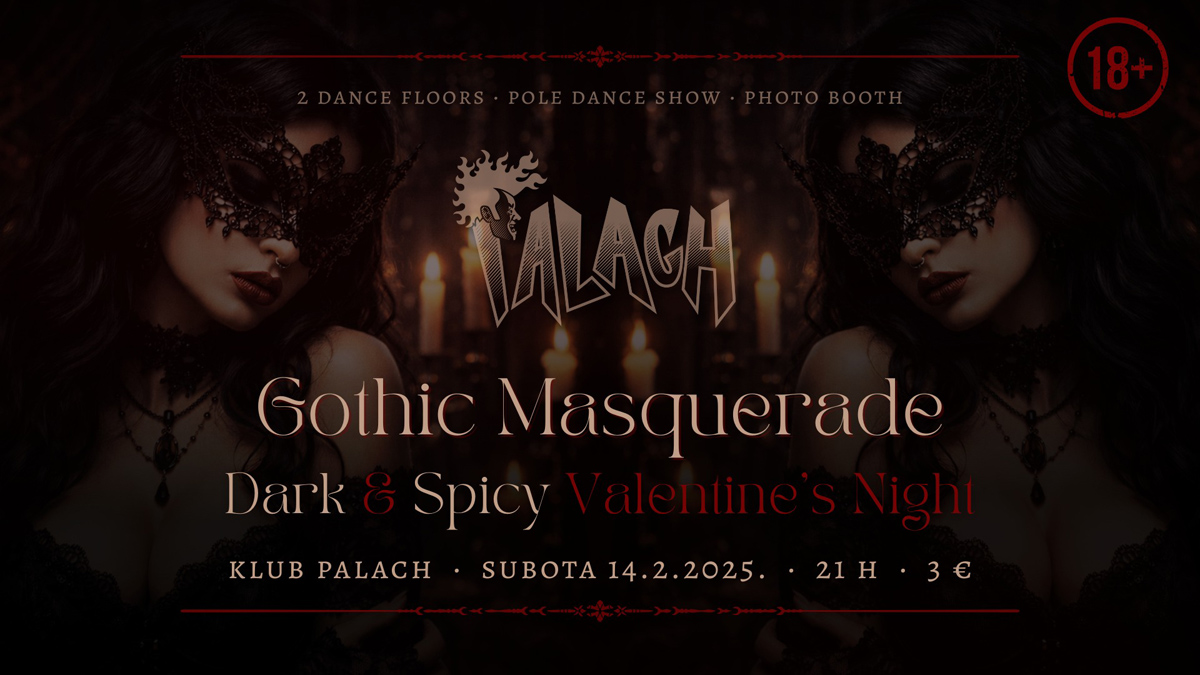 U Klubu Palach u subotu, 14. veljače, od 21 sat bit će održava se tematska klupska večer Gothic Masquerade: Dark & Spicy Valentine’s Night. Program se odvija na dva floora.