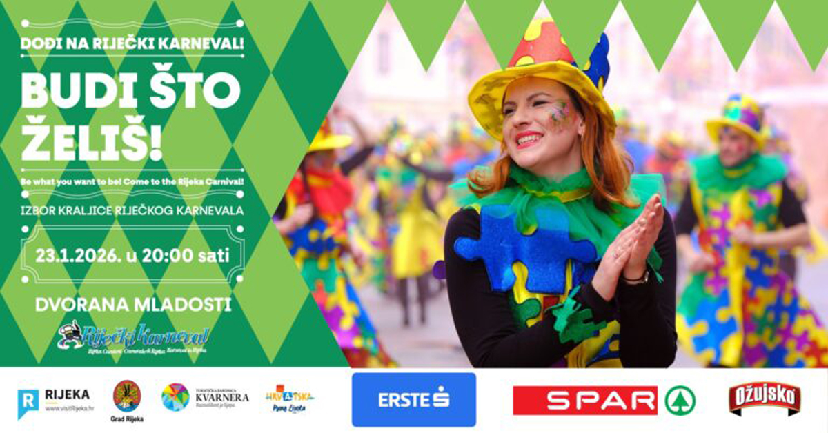 Pripremite se za najveseliju i najspektakularniju večer ove zime jer izbor nove Kraljice Riječkog karnevala dolazi u Dvoranu mladosti 23. siječnja 2026. godine s početkom u 20 sati!