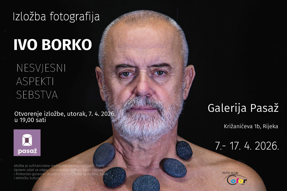 U Galeriji Pasaž, Križanićeva 1b, u utorak, 7. travnja 2026. godine, s početkom u 19.00 sati otvara se izložba fotografija slovenskog fotografa Ive Borka pod nazivom Nesvjesni aspekti sebstva.