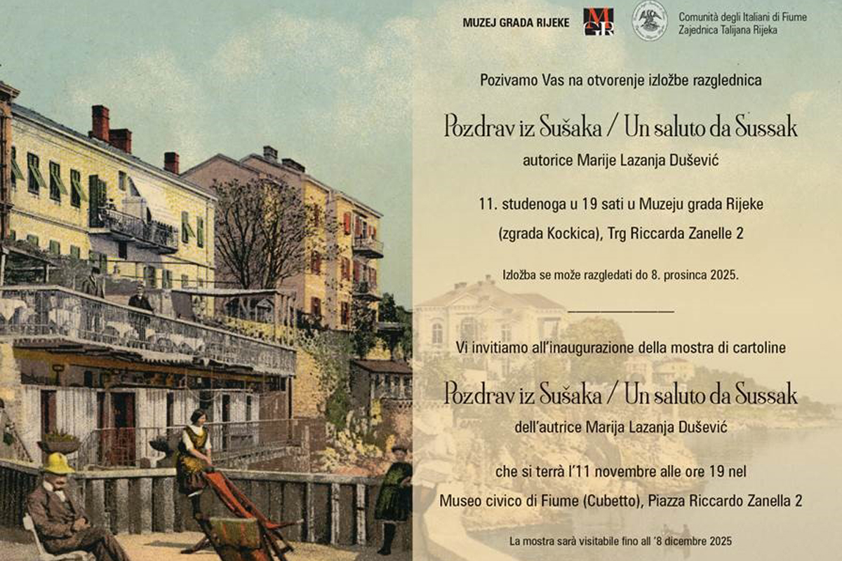 U Muzeju grada Rijeke otvara se izložba posvećena sušačkim razglednicama. Izložba i katalog Pozdrav iz Sušaka / Un saluto da Sussak prikaz su odabranih primjeraka muzejske Zbirke razglednica s motivima povijesnog grada Sušaka i njegove okolice. Kroz 125 razglednica prezentira se industrijsko, povijesno, urbanističko i kulturno nasljeđe Sušaka.