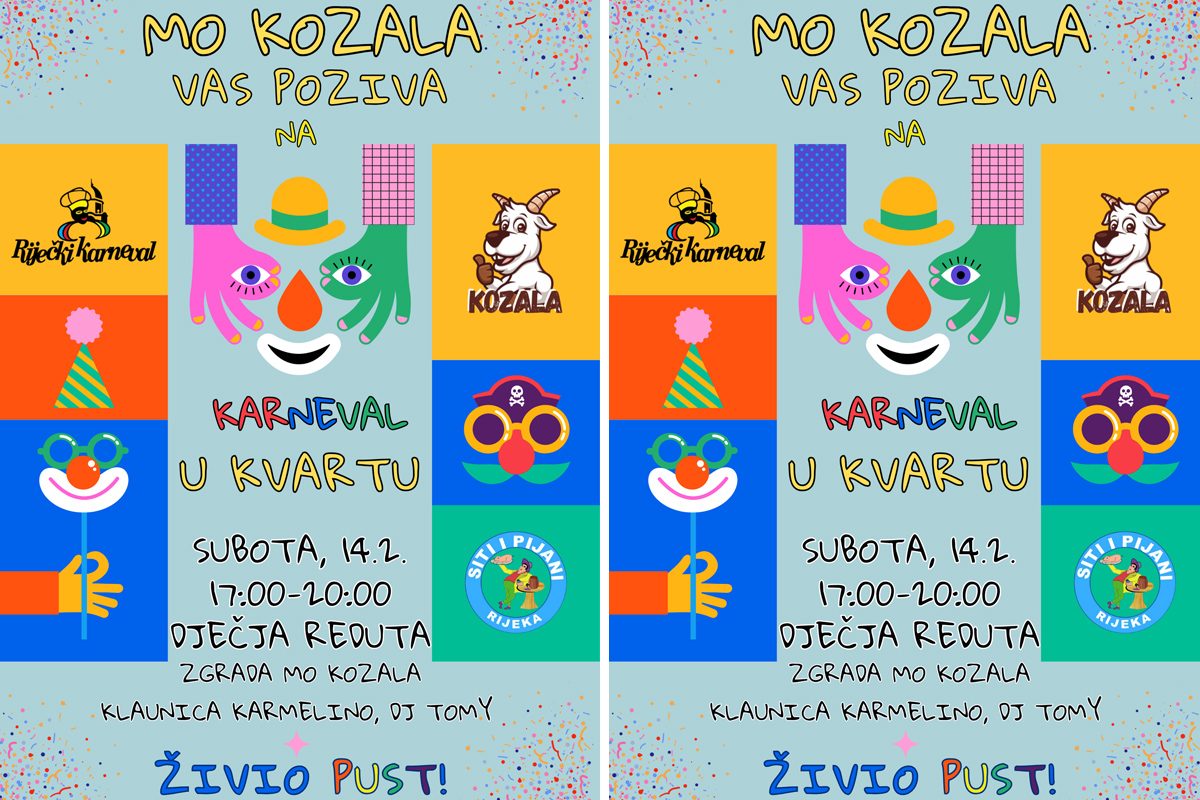 Ulaz je za sve, kao i uvijek slobodan, a zahvaljujući nesebičnoj podršci partnera osigurana je slatka i slana okrjepa te sokovi za djecu. Uz to, nezaobilazna tombola donosi brojne zanimljive, zabavne i vrijedne nagrade. U duhu našeg najdražeg riječkog karnevala, poručujemo svoj djeci i roditeljima: Budi što jesi, dođi na Karneval u kvartu!