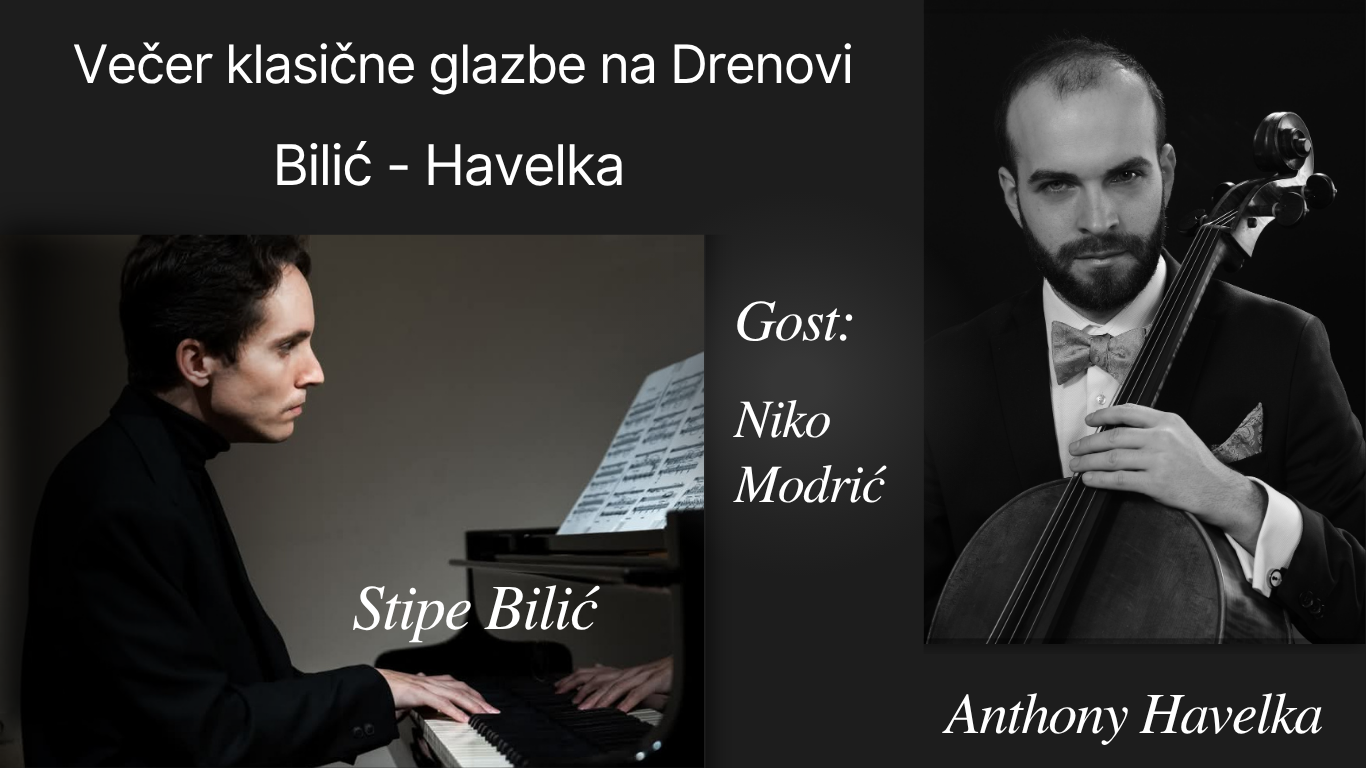 Pod zvjezdanim nebom u dvorištu DCD-a posjetitelji će uživati uz klasične izvedbe Stipe Bilića na klaviru i Anthonya Havelke na violončelu.