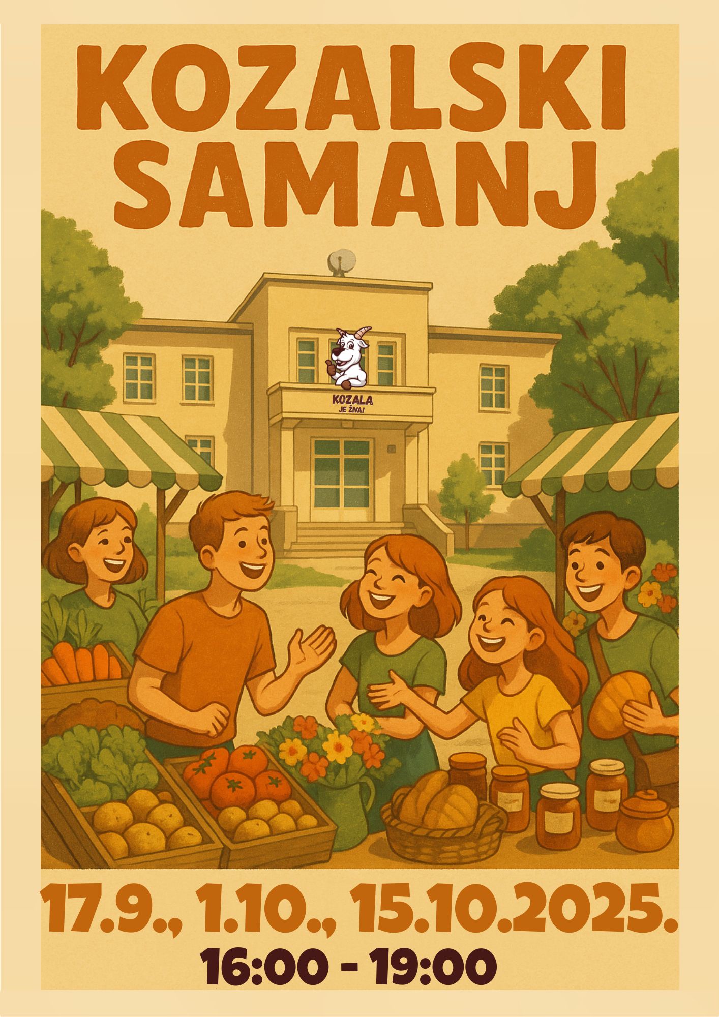 U srijedu, 17. 9., od 16 do 19 sati, Mjesni odbor Kozala organizira kvartovski, Kozalski sajam na kojem će građani moći pronaći voće i povrće, suhomesnate i sirne proizvode te rukotvorine (nakit i dječju opremu) te se osladiti fritulama.