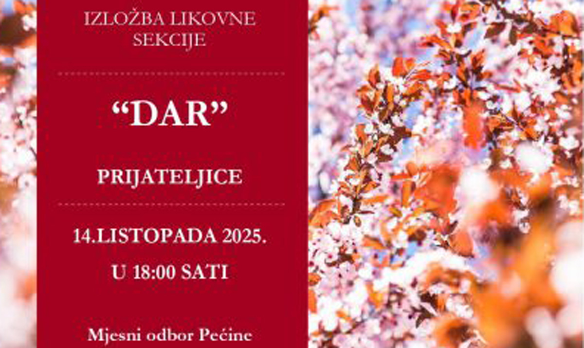 Likovna sekcija „DAR“, koja djeluje od 2013. godine, predstavit će se riječkoj publici zajedničkom izložbom pod nazivom „Prijateljice“. Otvorenje izložbe održat će se 14. listopada 2025. godine u 18:00 sati u prostorijama Mjesnog odbora Pećine.