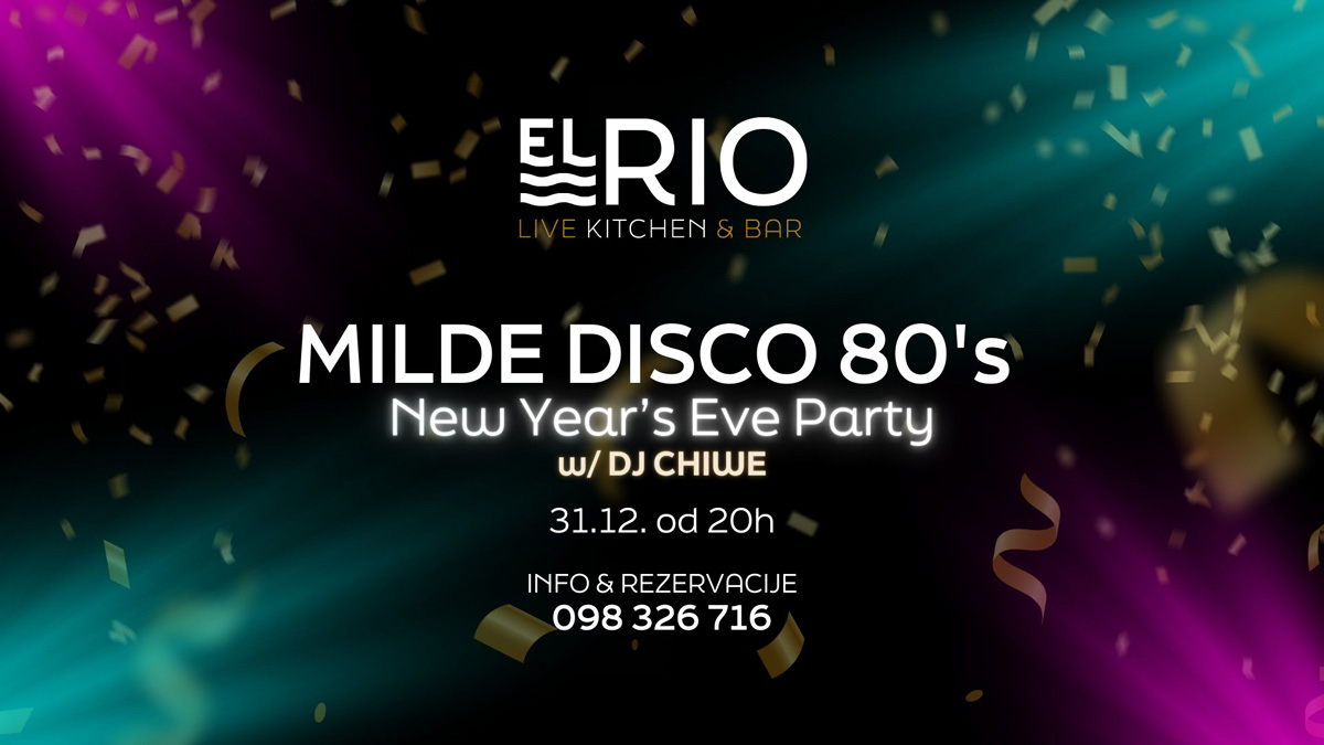 Restoran i bar El Rio – Live Kitchen & Bar (Jadranski trg 4c, Rijeka) poziva na tematski doček “Milde Disco 80’s New Year’s Eve Party” koji će se održati u srijedu, 31. prosinca, s početkom u 20:00 sati.
