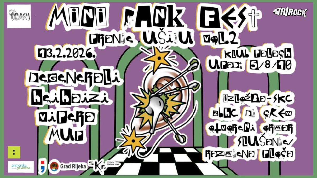 Drugo izdanje Mini Punk Festa, pod simboličnim nazivom „Pranje ušiju“, održat će se u petak, 13. veljače, s početkom u 18 sati u prostorima Galerije SKC i Palacha.