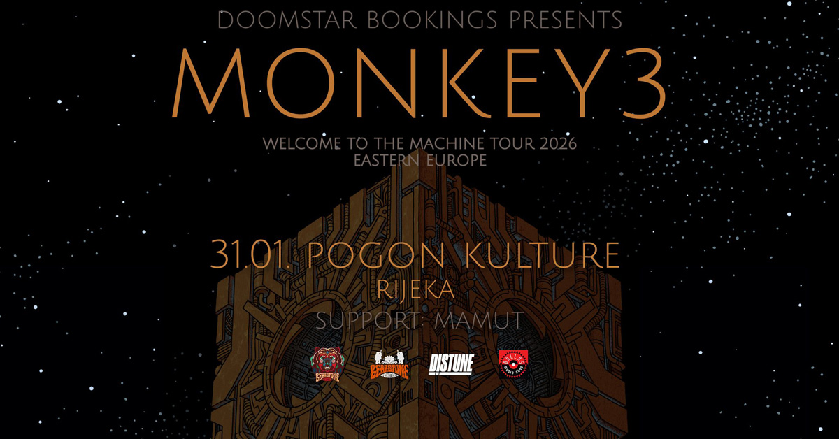 Bear Stone Promotions u suradnji s Distune Promotionom u subotu, 31. siječnja 2026. godine u riječki Pogon kulture dovodi švicarske psych rock velikane Monkey3, uz podršku lokalnih snaga Mamut.