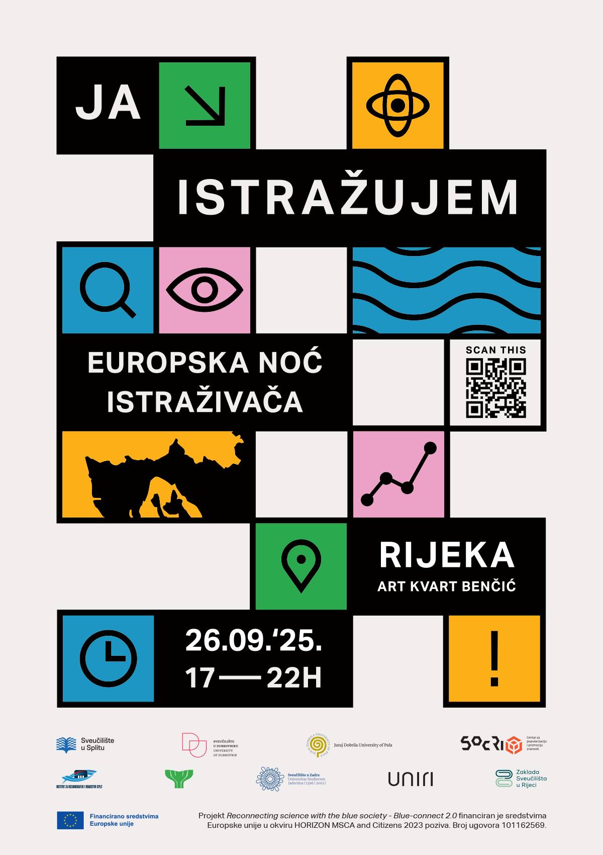 Europska noć istraživača u Rijeci dio je velike europske manifestacije koja se istovremeno održava u preko 460 gradova u 25 zemalja, a ove godine slavi 20. obljetnicu održavanja. U Hrvatskoj će se program odvijati u Rijeci, Puli, Zadru, Splitu i Dubrovniku, a svaka od lokacija pripremila je raznolik i kreativan program prilagođen lokalnoj zajednici.