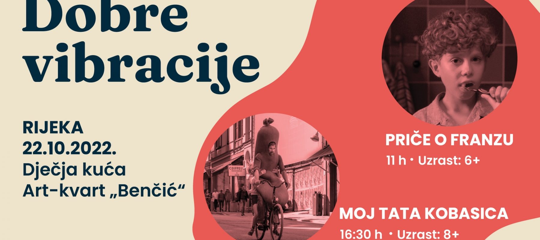U program Dobre vibracije namijenjenog roditeljima i djeci prikazuju su dva filma: U 11:00 sati kreću Priče o Franzu (r. Johannes Schmid, 2022.) – obiteljska komedija snimljena prema junaku romana Christine Nöstlinger u čijem je središtu školarac Franz, koji kao najmanji u razredu počinje pratiti popularnog influencera fitnessa, a od 16:30 sati na rasporedu je Moj tata kobasica (r. Anouk Fortunier, 2021.), koji govori o Zoe čiji otac odluči dati otkaz u banci i postati glumcem kako bi ostvario životni san pri čemu postane maskota kobasice.
