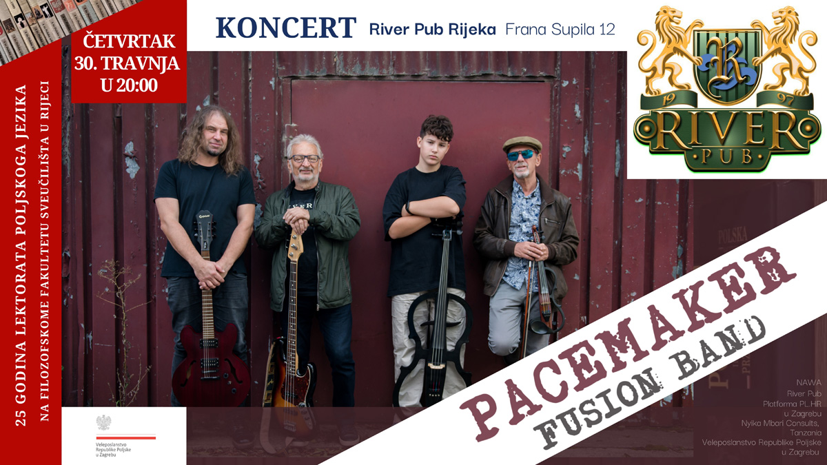 U sklopu obilježavanja 25. godišnjice Lektorata poljskog jezika na Filozofskom fakultetu Sveučilišta u Rijeci, riječku publiku očekuje poseban glazbeni događaj – koncert poljskog benda Pacemaker Fusion Band iz Krakova, koji će se održati u River Pubu.