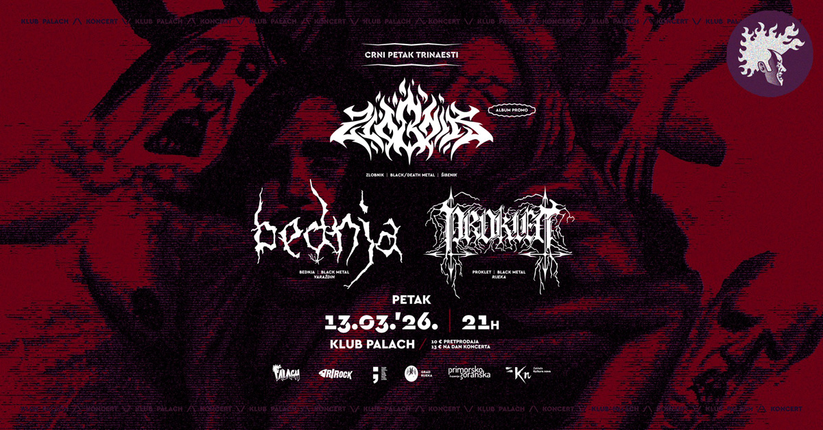 Klub Palach u petak, 13. ožujka 2026. godine, ugostit će tri domaća benda koji, svaki na svoj specifičan način, interpretiraju black metal žanr. Koncert započinje u 21:00 sat, a publika će imati priliku čuti kombinaciju blackened death metala, post-black zvuka i klasičnog riječkog crnog metala.