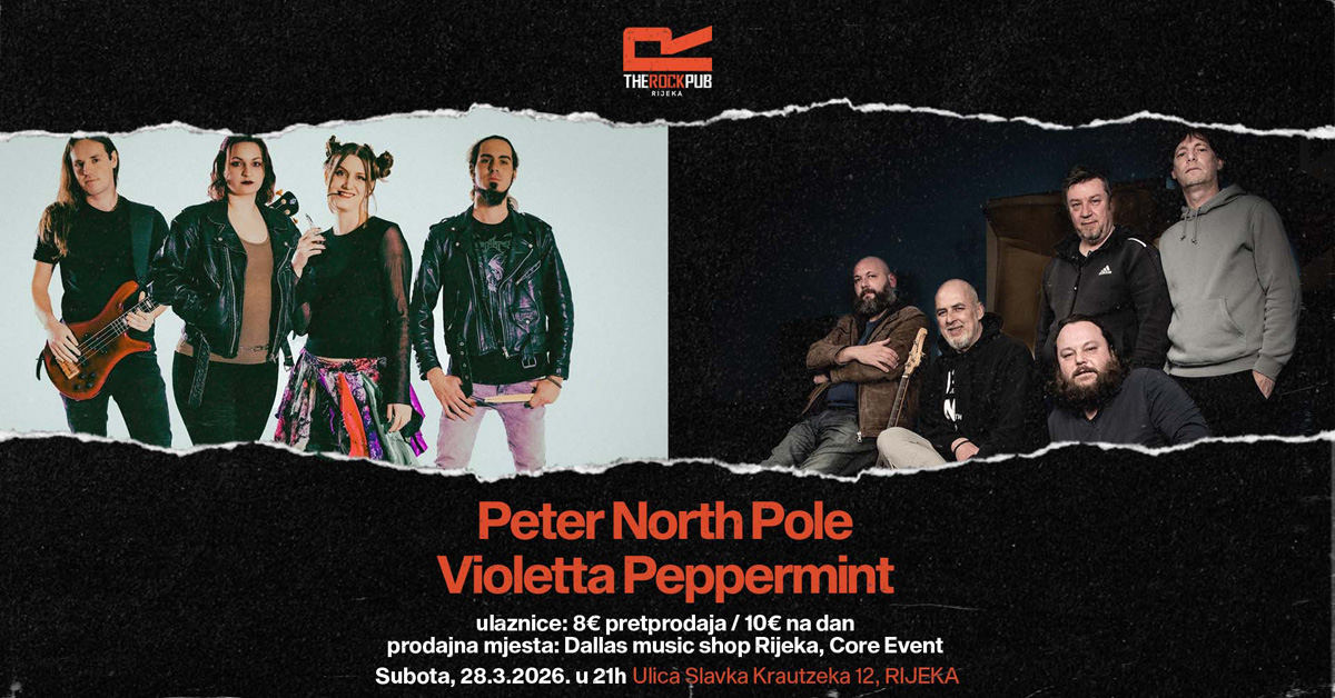U subota, 28. ožujka s početkom u 21 sat u The Rock Pubu bit će održan koncert novih bendova na riječkoj sceni – Peter North Pole i Violetta Peppermint.