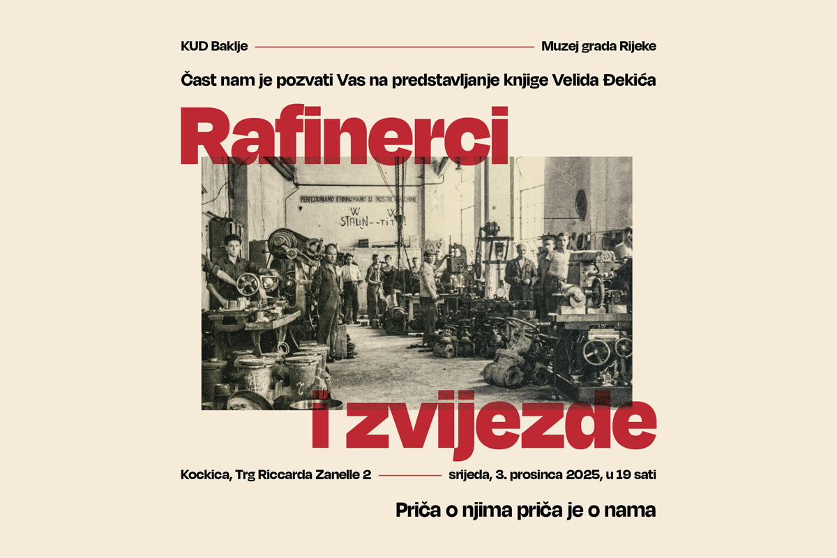 U Muzeju grada Rijeke, zgradi Kockica, u srijedu 3. prosinca 2025. u 19 sati bit će predstavljena knjiga “Rafinerci i zvijezde” Velida Đekića u izdanju nakladnika KUD Baklje.