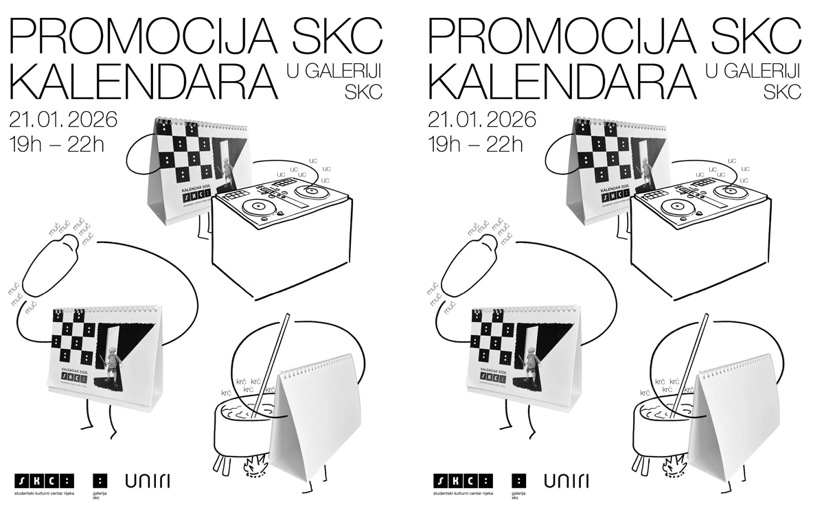 U Galeriji Studentskog kulturnog centra u srijedu, 21. siječnja s početkom u 19 sati, bit će održana promocija novog izdanja SKC Kalendara za 2026. godinu.