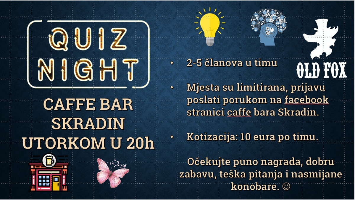 U Caffe baru Skradin u utorak 13. siječnja s početkom u 20 sati počinje peta sezona pub kvizova u ovom popularnom mjestu u Vodovodnoj ulici.
