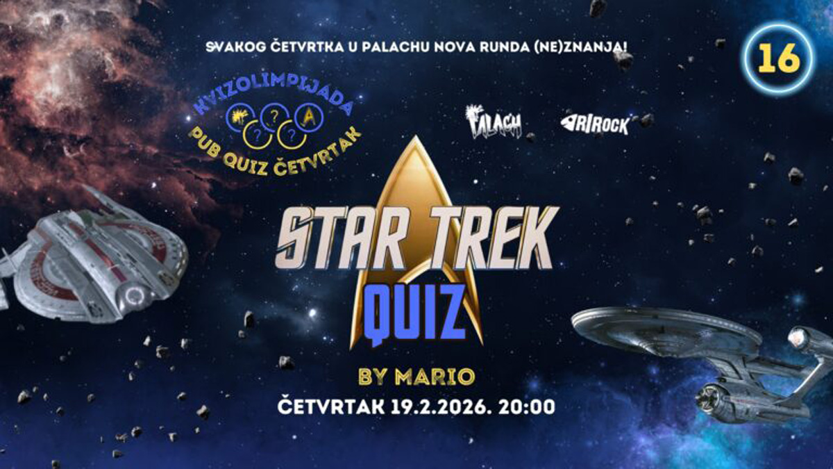 U četvrtak, 19. veljače u 20 sati, Palach postaje dio Federacije: održava se tematski Star Trek kviz koji obuhvaća sve generacije serijala, filmove, kapetane, brodove, rase, planete i legendarne citate iz jednog od najpoznatijih znanstveno-fantastičnih univerzuma.