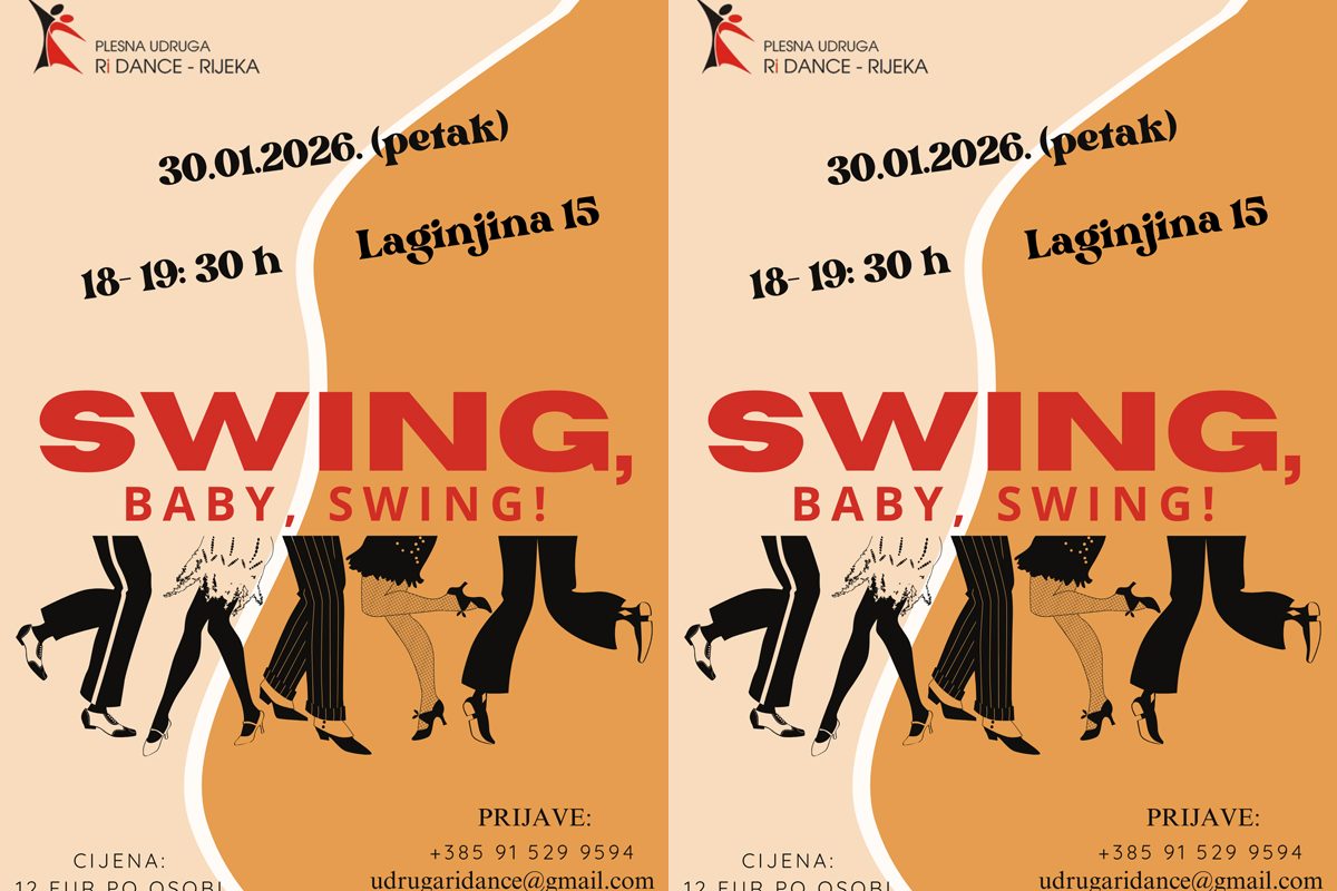 U petak, 30. siječnja 2026. godine, od 18 do 19:30 sati, u plesnoj dvorani Doma mladih na adresi Laginjina 15, bit će održana plesna večer za žene „Swing, Baby, Swing!“.