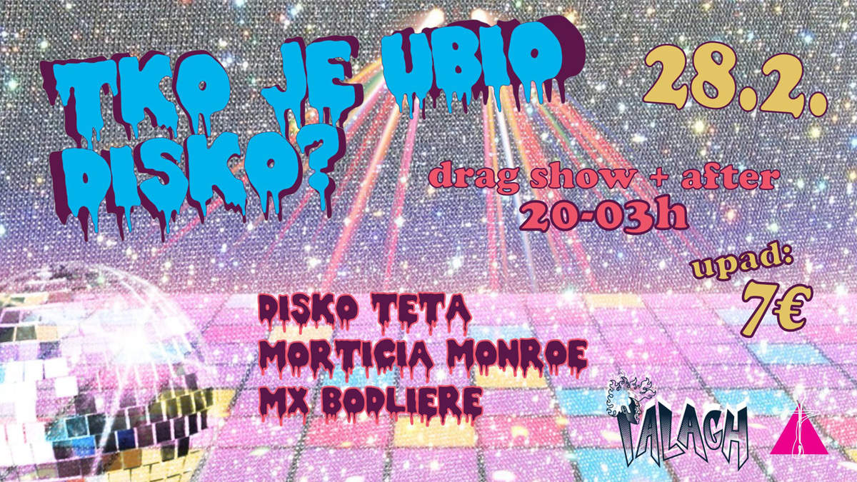 U subotu, 28. veljače, u Klubu Palach održava drag show i plesna večer pod nazivom „Tko je ubio disko?“.