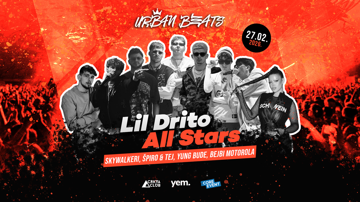 U sklopu programa Urban Beats, u klub Crkva u petak, 27. veljače, stiže „Lil Drito All Stars“ postava koju čine trenutno najaktualnija imena regionalne trap scene.
