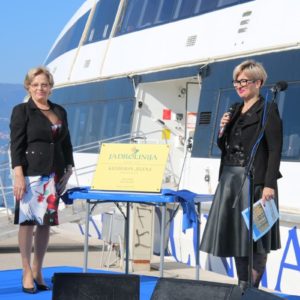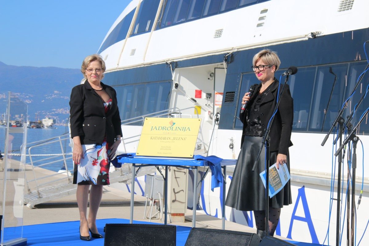 Zita Pleša, umirovljena radnica sa odrađenih 40 godina radnog staža u Jadroliniji, postala je kumom katamarana, pri čemu je istaknula veliku čast i zahvalnost Jadroliniji na prepoznavanju njezinog dugogodišnjeg