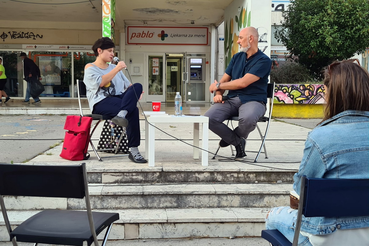 Na platou ispred Robne kuće Gornja Vežica u Rijeci jučer je održan novi susret iz ciklusa Gradske knjižnice Rijeka “Knjiga na nezgodnim mjestima”. Ovaj put druženje je proteklo u duhu poezije jer je gošća bila Monika Herceg, jedna od najpopularnijih i najpriznatijih suvremenih hrvatskih pjesnikinja, a razgovor je moderirao književnik i glazbenik Zoran Žmirić.