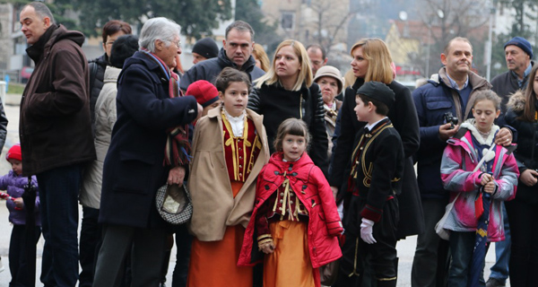 početka izvođenja kola pozdravio sa Kotorskim Biskupom mns. Ilijom Janjićem.