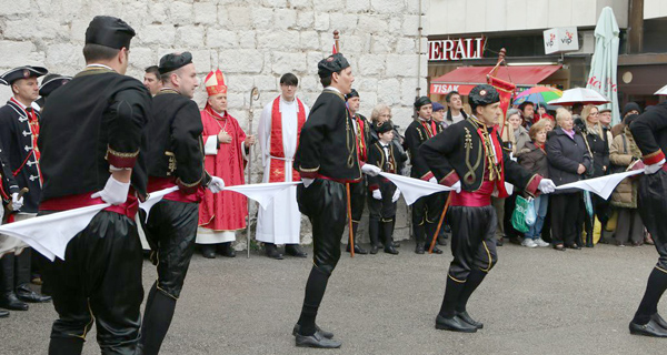 U Crkvi Uznesenja Blažene Djevice Marije održana je sveta misa u povodu proslave Svetog Tripuna, a predvodio ju je Kotorski Biskup mns. Ilija Janjić. Misa je održana u sklopu Tripunskih dana- Dani Bokelja, koji se već tradicionalno održavaju u Rijeci, a kroz njih se promiče kulturne i povijesne vrijednosti Bokelja i Boke kotorske. Organizator ove manifestacije je Hrvatska bratovština “Bokeljska mornarica 809” Rijeka Bokelji i u Rijeci kao i svome zavičaju drže do tradicijski vrijednosti po kojima su prepoznati u svijetu, pa se prilikom Proslave svetog Tripuna održavaju misa i zahvale (zaštitniku, postrojava se odred i poslije mise pleše Kolo Svetom Tripunu. Kolo je pratila glazba Gradske glazbe Trsta.