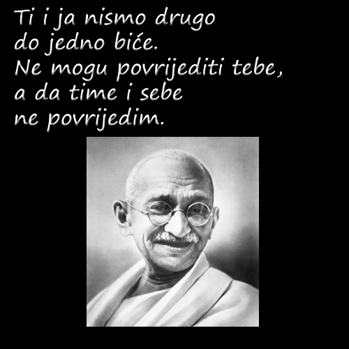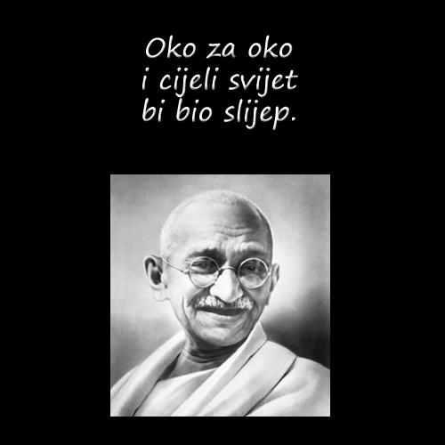 “Čekat ću stoljećima bude li to potrebno”, kazao je Gandhi, “i neću slobodu svoje zemlje kupovati krvlju.” Nikad nije zaboravio veličanstvenu opomenu: “Tko se mača laća, od mača će i poginuti.”