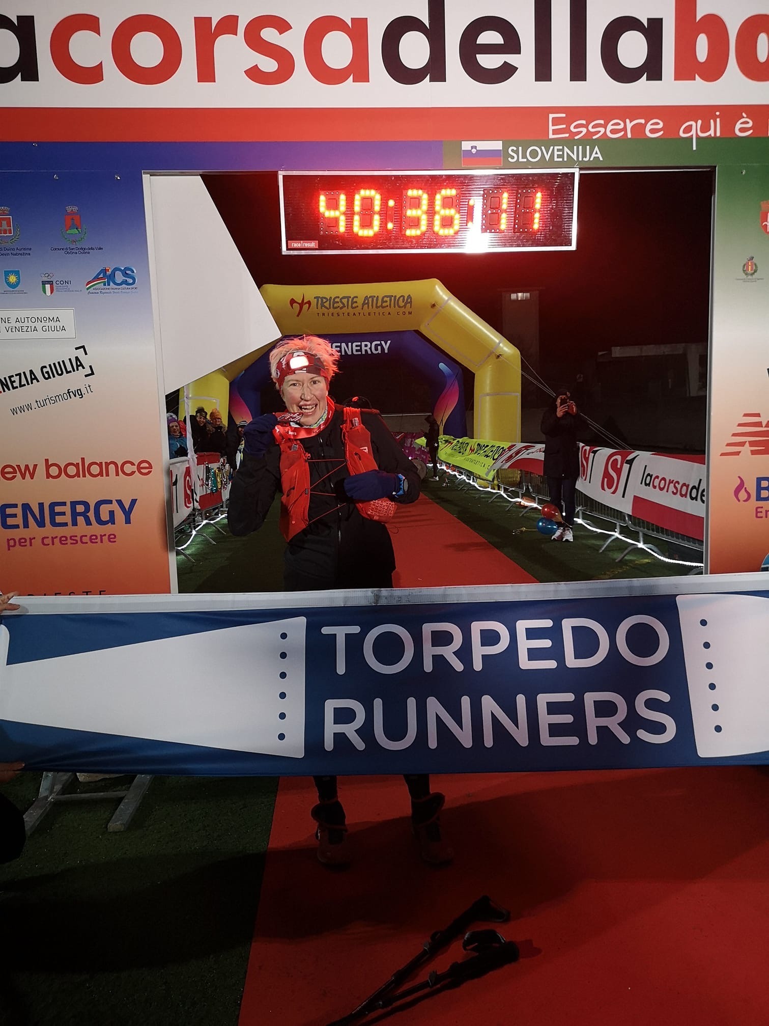 Jedan dan, 15 sati, 35 minuta i 50 sekundi bilo je potrebno Mariji Vlacich, članici SRU “Torpedo Runners” za njezinih prvih pretrčanih 100 milja. Učinila je to na ultra trail utrci La corsa della Bora čiji je start bio u subotu, 4. siječnja u 5 sati, a koja je osim duljinom od 168,3 km te ukupnom visinskom razlikom od 7.110 metara sudionicima postavila i dodatni izazov – vjetrovito, dakako za siječanj očekivano, hladno vrijeme.