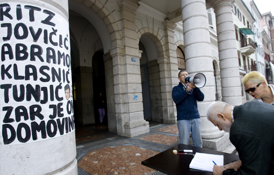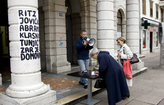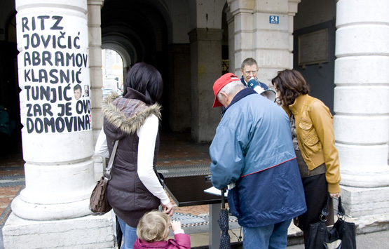 megafonom prizivao ljude neka priđu i upišu se u knjigu žalosti i tako još jednom