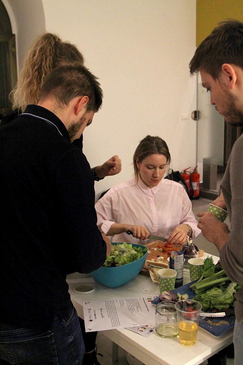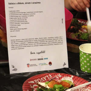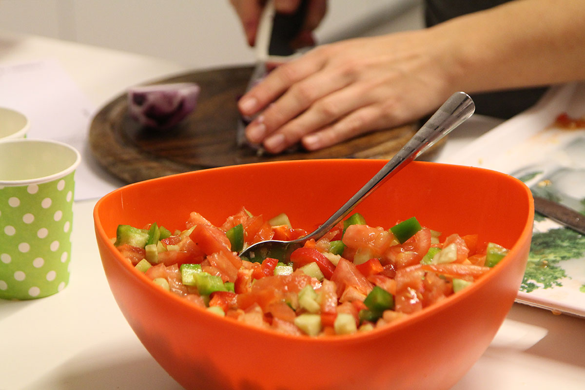 Za radionicu se vladao veliki interes, a polaznici su pripremali jela kao što su salata s ciklom, sirom i orasima (Francuska), curry party jaja (Nizozemska), jednostavni otvoreni sendviči “ smørrebrød“ (Danska), hladne juhe od rajčice gazpacha (Španjolska) i osvježavajuće talijanske salate (Italija).