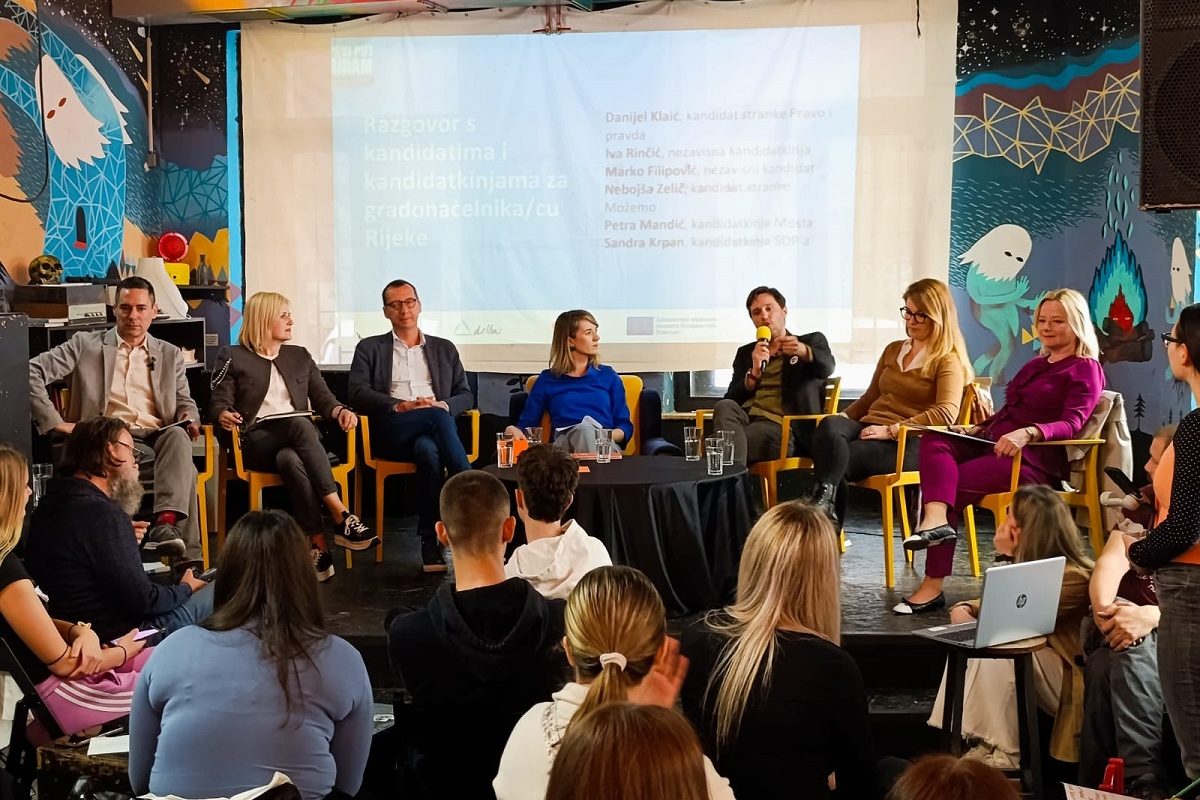 Na dijalogu, koji je zamišljen kao susret kandidatkinja za gradonačelnika_cu Rijeke i mladih biračica koje će ove godine prvi put glasati na izborima, sudjelovali su: Danijel Klaić (Pravo i pravda), Iva Rinčić (nezavisna kandidatkinja), Marko Filipović (nezavisni kandidat), Nebojša Zelič (Možemo), Petra Mandić (Mosta), Sandra Krpan (SDP). Na susret s mladim biračima i biračicama pozvani su kandidati i kandidatkinje koji su najavili kandidaturu za gradonačelnika_cu Rijeke.