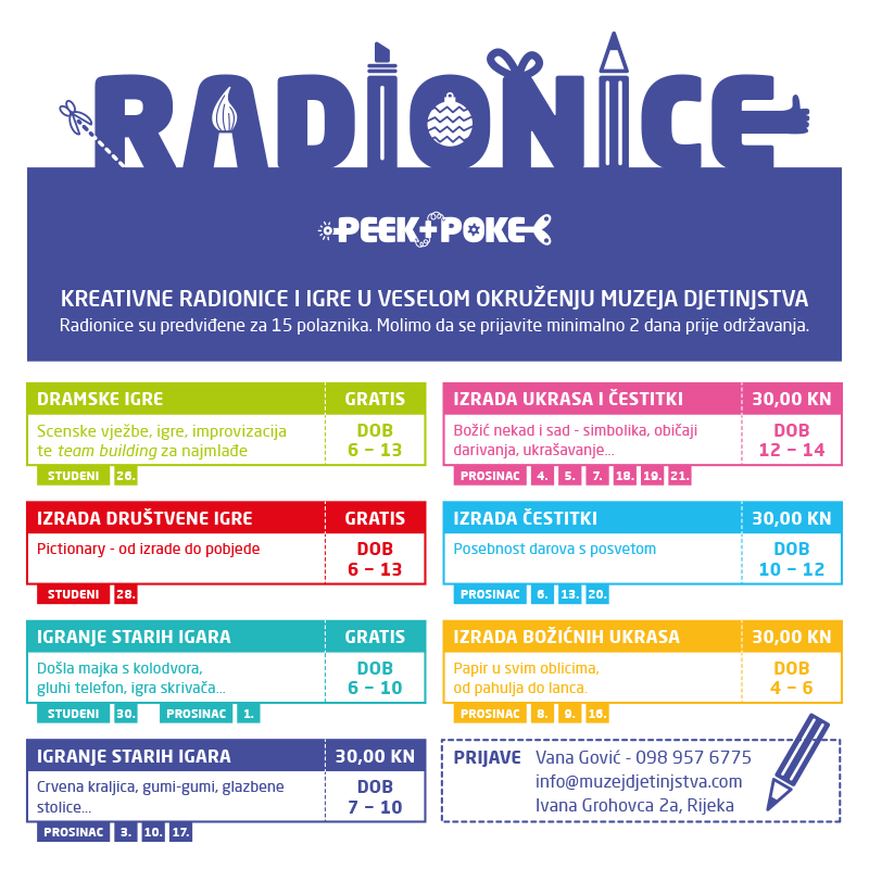 svaku pojedinu radionicu dostupne su na facebook stranici Peek&Poke-Muzej