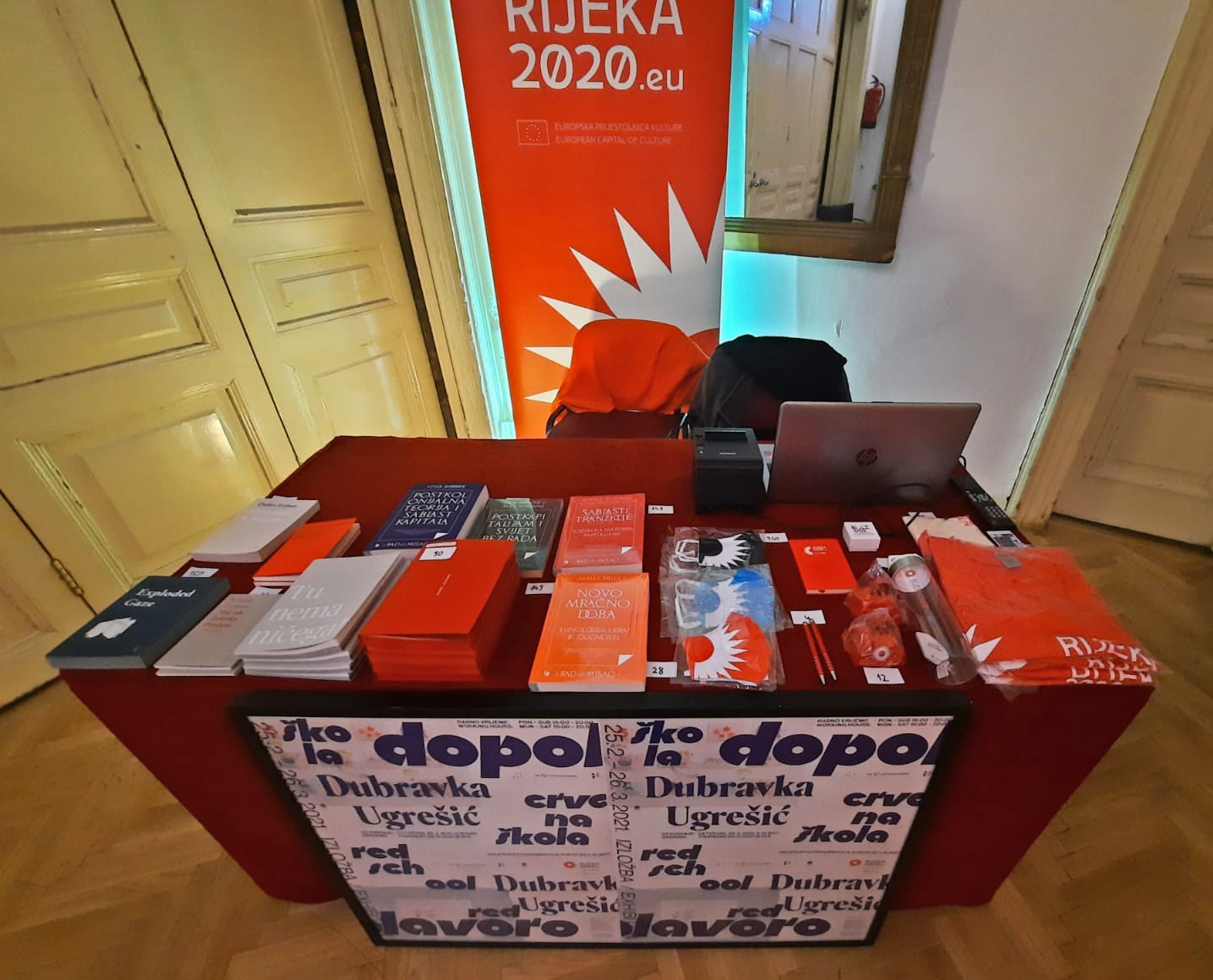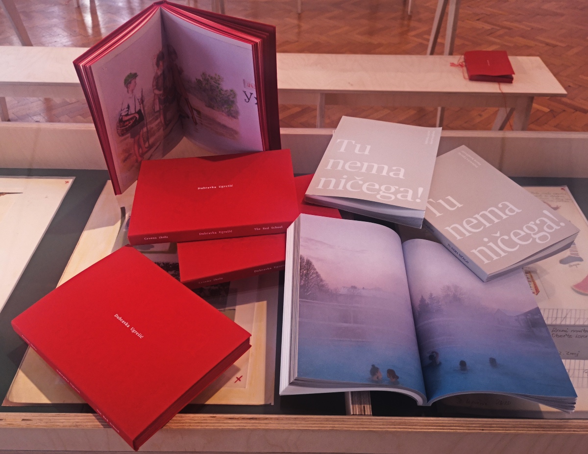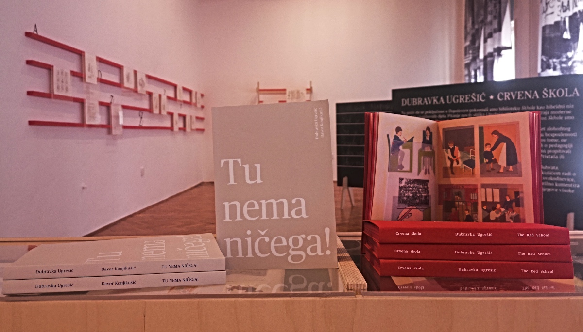 Na izložbi „Crvena škola“ proslavljene hrvatske književnice Dubravke Ugrešić, koja se do 26. ožujka besplatno može razgledati u riječkoj Galeriji Filodrammatica, za sve zainteresirane u prodaji se nalaze i izdanja biblioteke Skhole, segmenta programskog pravca Dopolavoro, Rijeke 2020 – Europske prijestolnice kulture. Radi se o eseju „Tu nema ničega!“ Dubravke Ugrešić i Davora Konjikušića te o katalogu izložbe „Crvena škola“. Esej se prodaje po cijeni od 119 kuna, dok katalog izložbe stoji 90 kuna.