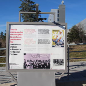 Na deset dvostranih vanjskih izložbenih panoa postavljenih na šetnici prema zgradi STEP RI govori se o Španjolskom građanskom ratu koji je trajao od 1936. do 1939. godine, ali i o ulozi koju su u njemu imali dobrovoljni vojnici iz Rijeke, Primorsko-goranske županije, pa na koncu i cijele Hrvatske te o ulozi kulturnjaka, književnika, umjetnika i raznih aktivista u tom ratnom vihoru.
