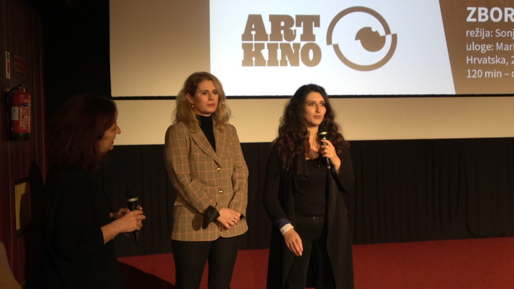 Hrvatska kinopremijera nagrađivanog filma “Zbornica” Sonje Tarokić održala se jučer u Art-kinu, uz gostovanje redateljice, glavne glumice Marine Redžepović te producentice Ankice Jurić Tilić (Kinorama).