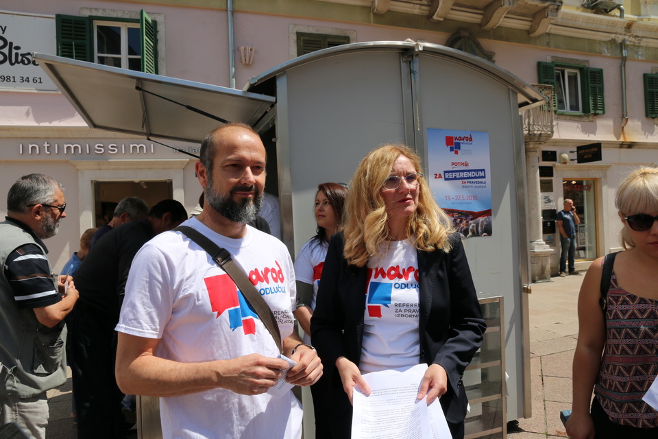 Građanska inicijativa „Narod odlučuje“ na današnjoj je konferenciji za novinare na riječkom Korzu, prozvala je gradonačelnika Rijeke Vojka Obersnela da je zbog neodobravanja svih traženih lokacija za prikupljanje potpisa za pokretanje referenduma za izmjenu izbornog zakona, naplaćivanja korištenja javnih površina te odugovlačenja postupka izdavanja odobrenja za korištenje javnih površina, građanima uskraćuje pravo zajamčeno Ustavom.