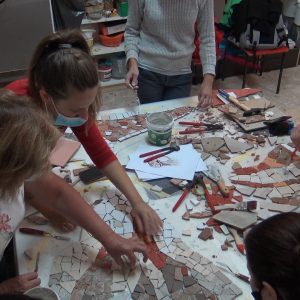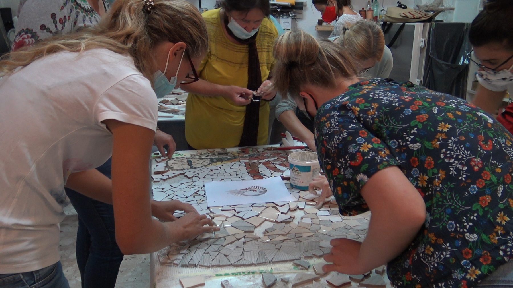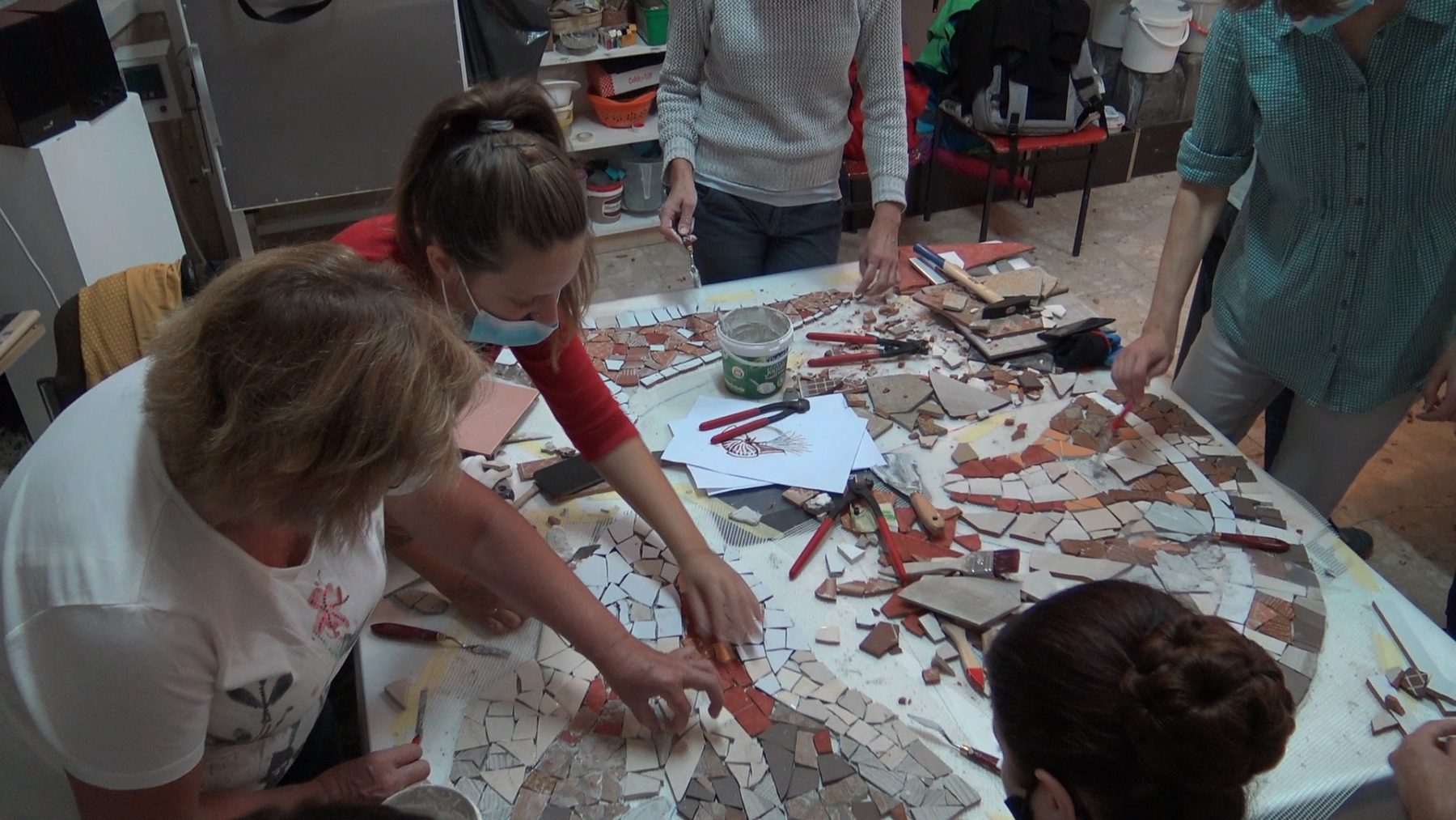 Učeći o ovoj likovnoj tehnici, polaznici radionice tijekom tjedan dana izrađivali su mozaik koji su postavili na zidu kod prolaza prema Kružnoj ulici pored Erste banke. Time se uredio taj često vandalizirani i zapušteni dio središta grada.