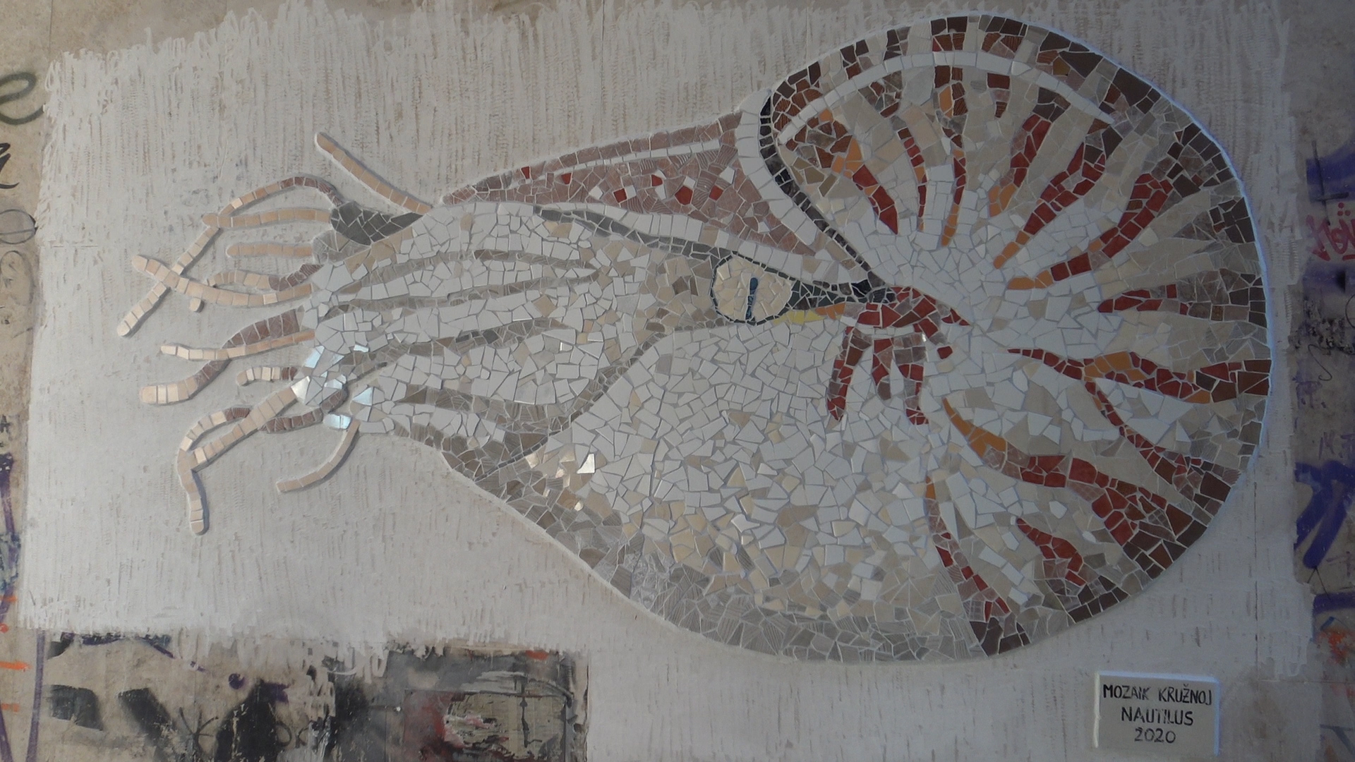 Za motiv mozaika odabran je školjkaš – nautilus kako zbog svojih boja, tako i zbog poruke: on je naime jedan od rijetkih organizama koji je preživio masovna izumiranja.