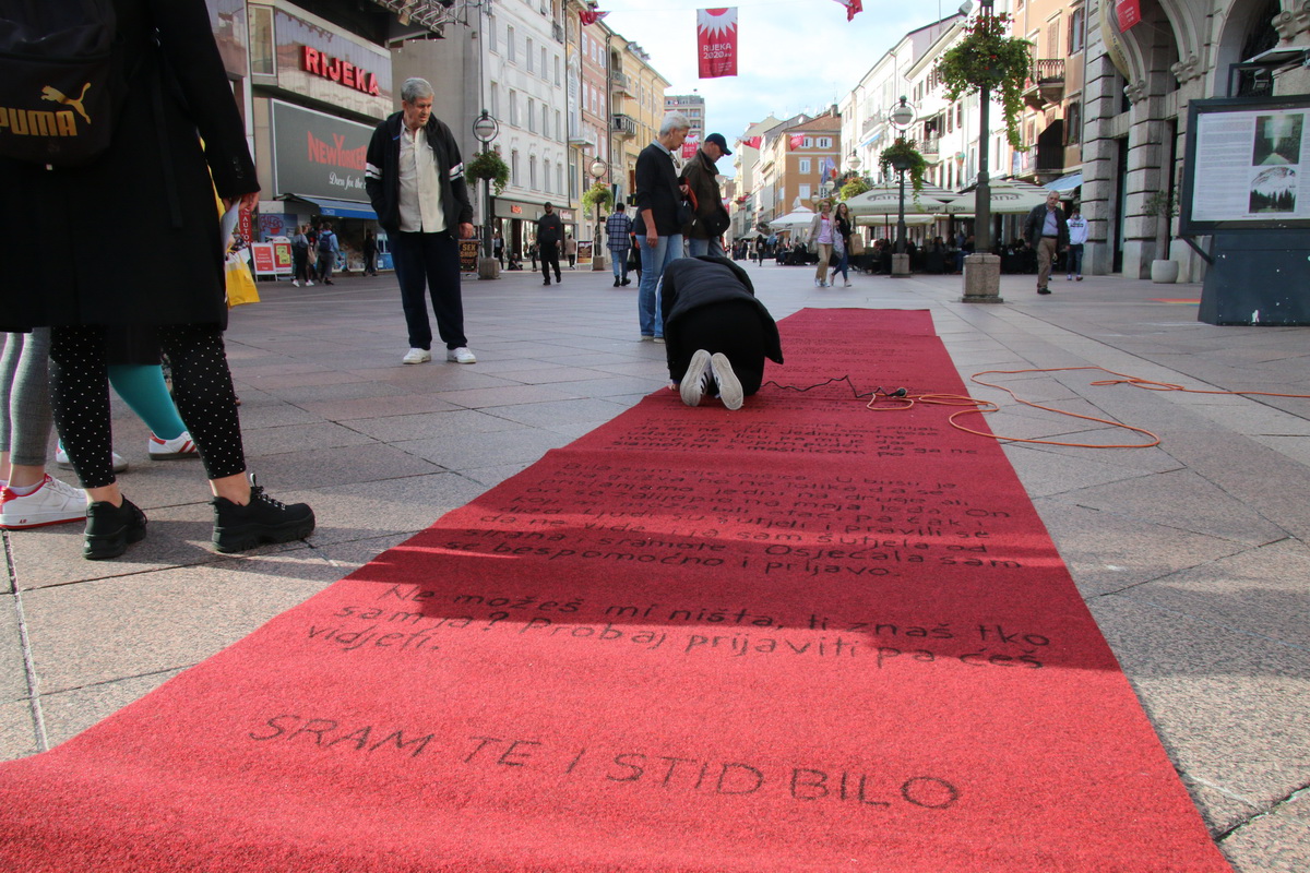 Performansom mlade umjetnice Nives Žarković na Korzu Udruga SOS Rijeka – centar za nenasilje i ljudska prava upozorila je na važnost svakodnevne borbe protiv nasilja nad ženama.