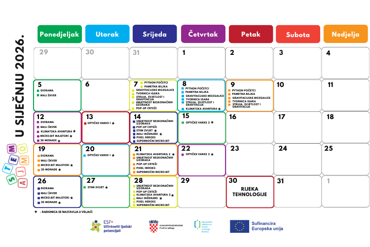 Kao i svakog mjeseca, u suradnji s partnerima projekta, pripremljen je bogat program STEM radionica koje povezuju tehnologiju, znanost, logiku i kreativnost. Kroz radionice se potiče razvoj logičkog razmišljanja, rješavanja problema, kreativnosti i timskog rada.