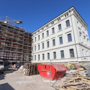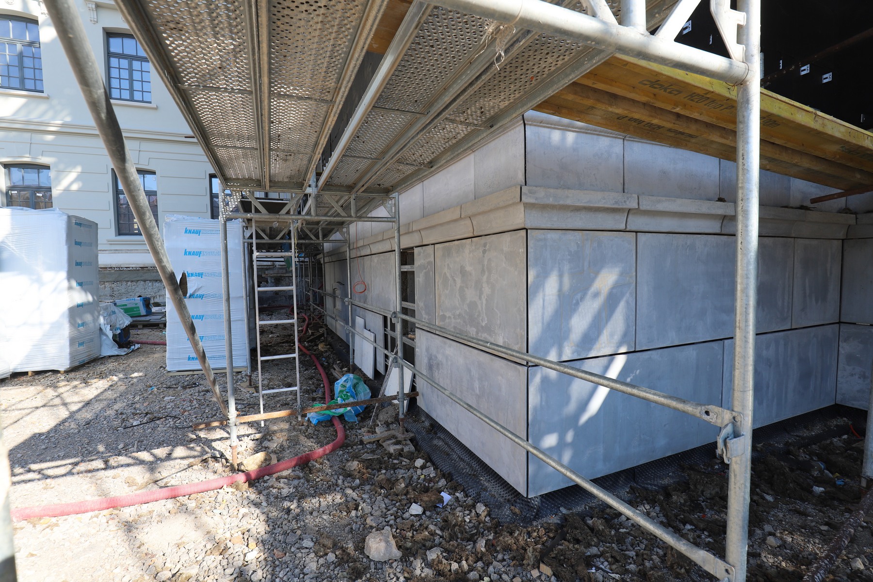 Usporedno s radovima u unutrašnjosti objekta izvedena je fasada osnovnog volumena ukupne površine od 2.200 m2, uključujući i fasadne ornamente tehnikom koja odgovara izvornom načinu gradnje.