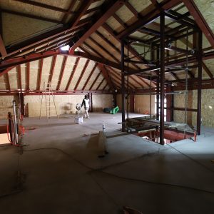 Slijede radovi na postavljanju toplinske izolacije i gips-kartonski radovi plafona u potkrovlju te soboslikarski radovi. U tehničkim prostorijama i sanitarnim čvorovima preostaje za izvesti glatke obojene elastične podne obloge, a u ostatku objekta će se prije postave namještaja ugraditi elastične podne obloge od sintetičkog kaučuka.