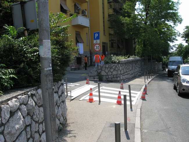 Zato je Vijeće zatražilo da se odobri iscrtavanje novoga prijelaza, a nakon što su to nadležne službe odobrile Rijeka promet je obavio posao. Iscrtavanjem pješačkog prijelaza smanjila se opasnost od stradanja, jer je nogostup u tom dijelu ulice i kolnik, budući da se iz Jelićeve ulice kroz njega odvija i promet automobilima koji su često oduzimali pravo prvenstva prolaza pješacima.