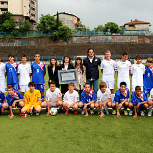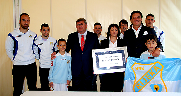 Predsjednik NK Rijeke Damir Mišković ovom je prigodom supruzi preminulog Roberta Komena, Olgi Komen, uručio repliku igrališta.