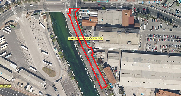 Usporedno sa novim prometnim režimom od utorka, 15. studenog 2016. godine započinju radovi na sanaciji kolnika u ulici Šetalište A. K. Miošića između k. br. 8 i 13, kako je prikazano na ortofoto prikazu (slika 1.) Izvodit će se radovi zamjene završnog sloja asfalta u punoj širini kolnika na dionici duljine oko 150 metara (1350 m2). Izvođenje radova predviđeno je u trajanju od 5 (pet) kalendarskih dana, a u slučaju nepovoljnih vremenskih uvjeta može doći do produljenja trajanja radova.